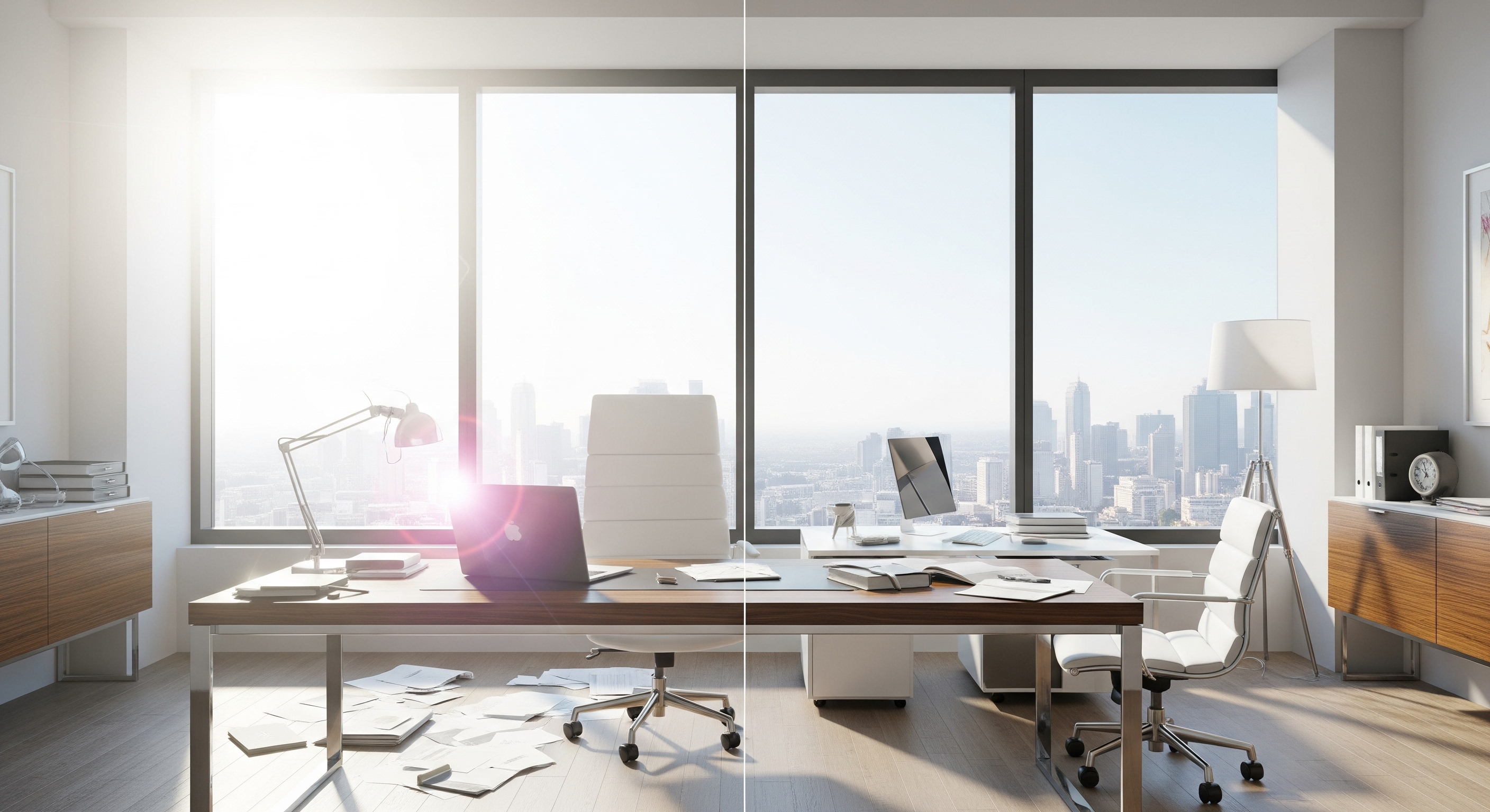 Sun glare is a notorious productivity killer. In a modern office, it causes painful digital eye strain and headaches as employees squint at their computer screens. This forces them to change their posture, move to a different location, or close the blinds, which defeats the purpose of having windows in the first place.