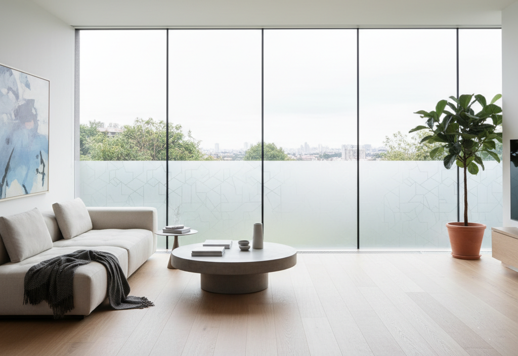 The principle is simple. The film changes how light travels through the glass. Some types reflect light during the day, making it harder to see inside. Others add a frosted or opaque look that blocks views completely while still allowing light to enter.