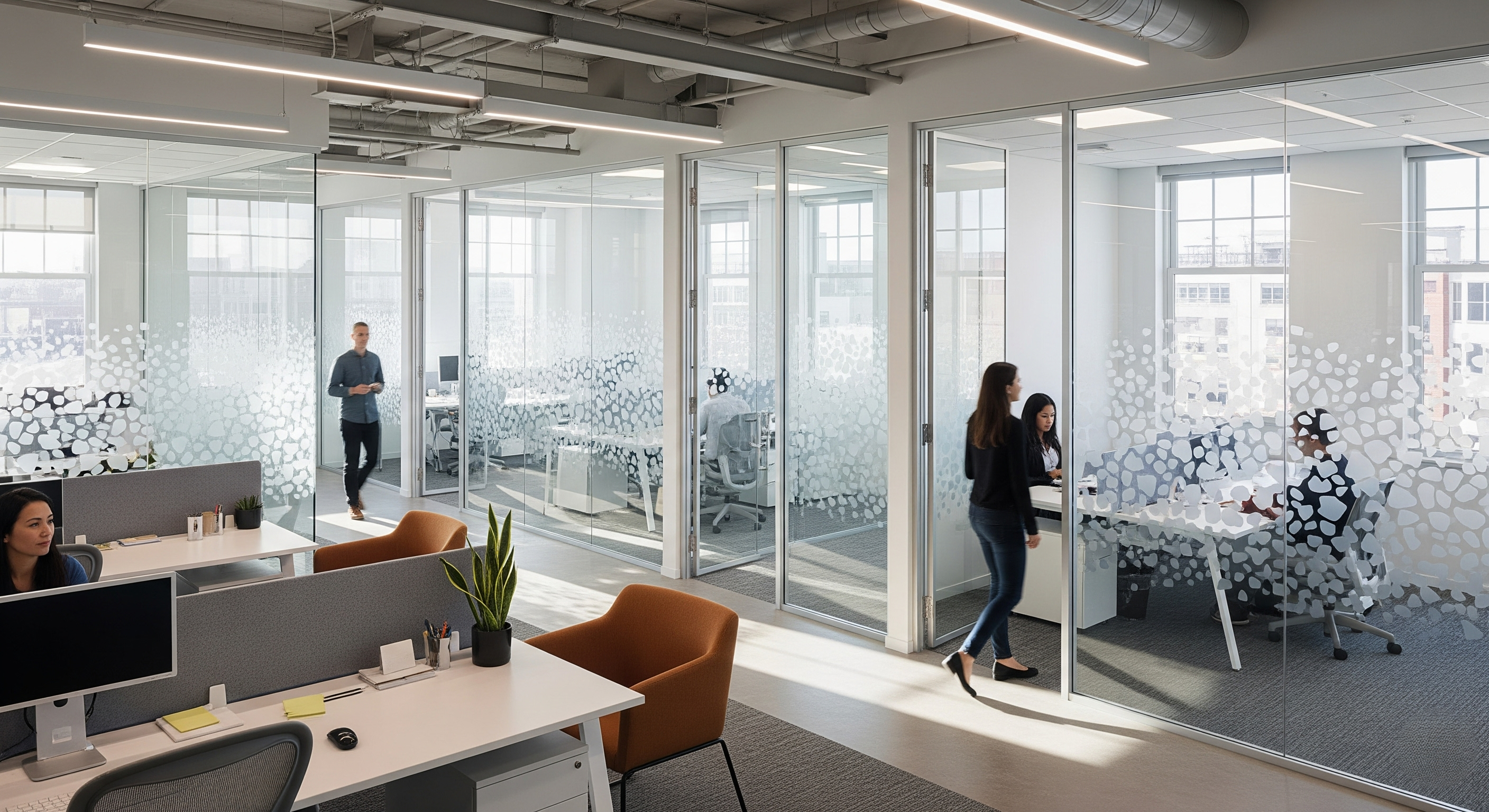 Privacy film isn’t just functional—it also enhances office design. Decorative patterns, frosted styles, and custom prints can reinforce a company’s brand while adding a sleek touch.
