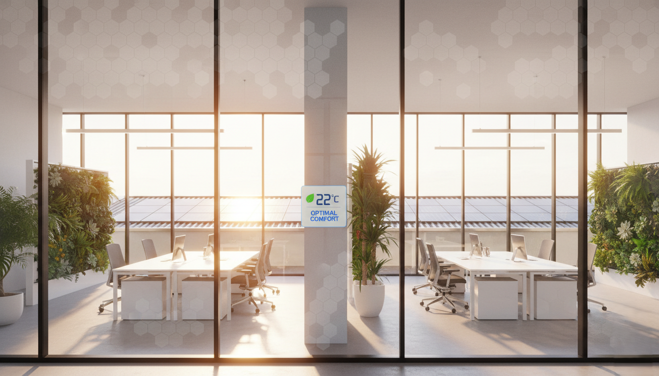 The result was a balanced indoor climate, reduced glare on screens, and a 25 percent cut in cooling costs.