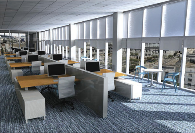 Another product just released on the market by 3M is the 3M Daylight Redirecting Film. This film, which applied on the top portion of the glass, redirects sunlight as much as 40 feet into the office space to reduce the need for artificial lighting. It also redirects the light upward to reduce glare and spread the light out across the entire space. Everyone likes light, unfortunately unwanted glare forces most occupants to close the blinds which darkens the interior and reduces any views.