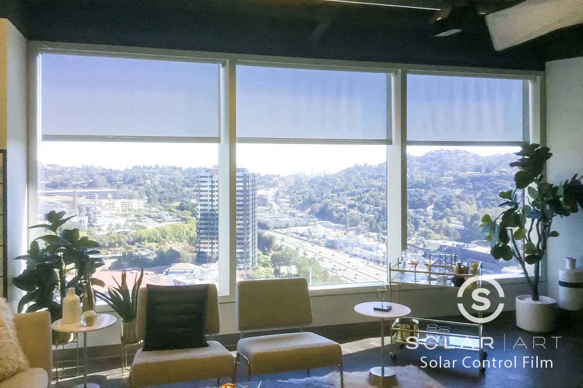 Our sales representative met the customer at the studio to take a look at the glass in question. When he got to the office he could feel the heat coming through the windows and agreed they needed a higher performing window film for the windows. Our sales representative learned the customers goals and what they were looking for exactly. After hearing what they were looking for, our sales representative showed the customer different solar films he thought might be a good fit. He showed solar films that aren’t going to hinder the views in the offices and will reduce heat and glare. After seeing all the different options and learning about the benefits of each, the customer really liked a Panorama window film. The Panorama window film the customer liked is a product made by SolarGard called Slate 20. The Panoramic window film series are made free of metal and dye. What this means is it will provide a neutral, non-reflective look that will keep views completely in tact while still rejecting heat and glare. Slate 20 blocks 70% of heat, 75% of glare and 99% of UVA and UVB rays. This is going to make a significant difference in the temperature of the offices. The rooms should be cooler and productivity should be increased because of the reduced glare. The customer was really happy with the results of the installation because this Panorama window film is a higher performing window film and they were able to reduce heat without losing their views. In addition to Panorama window film and solar film, American Window Film also services decorative window film, custom graphics, anti graffiti film, window security film, and exterior building wraps. If you are a business owner that is having issues with heat and glare or are interested in learning more about Panorama window film, contact American Window Film today for a free quote!
